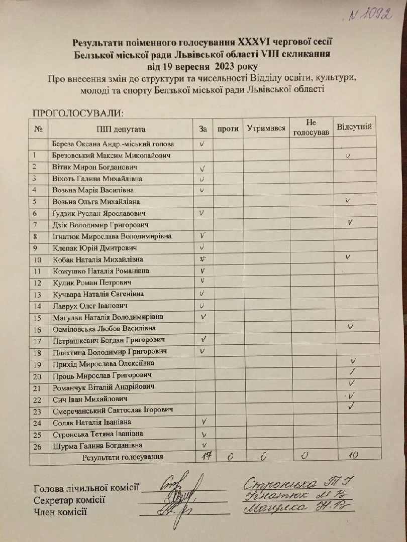 Голосування до рішення №1092