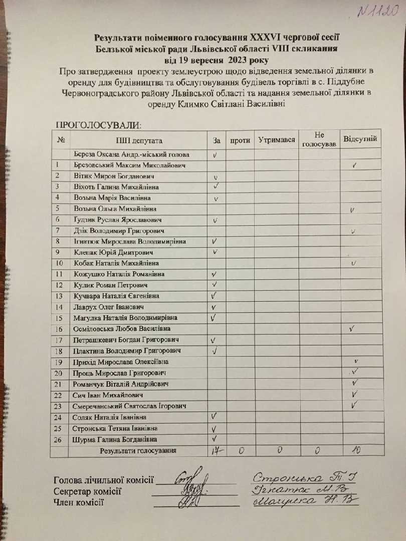 Голосування до рішення №1120