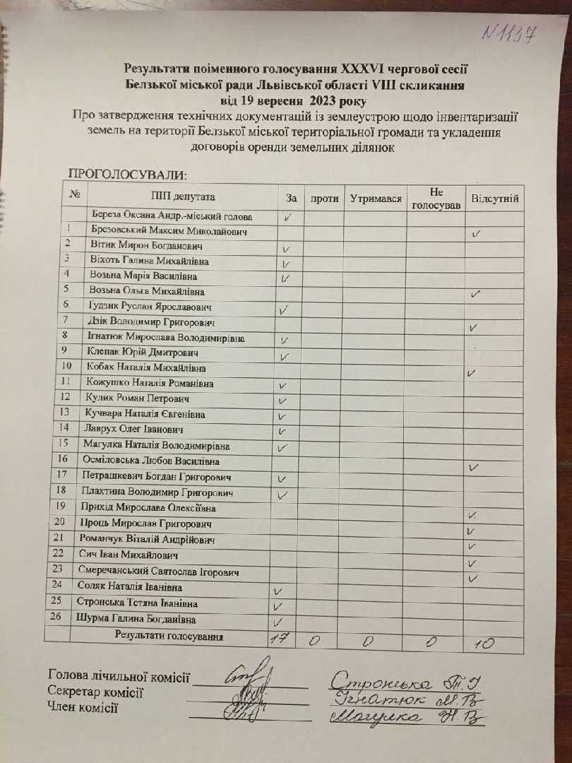 Голосування до рішення №1137