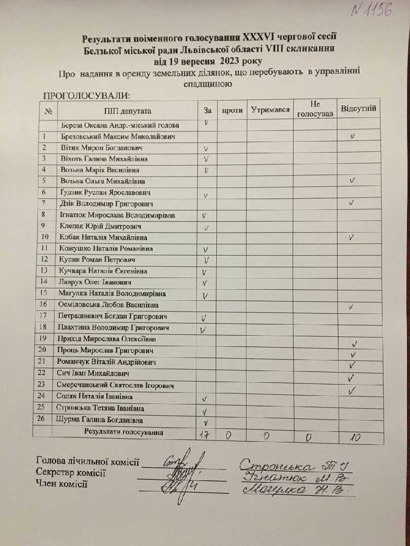 Голосування до рішення №1156