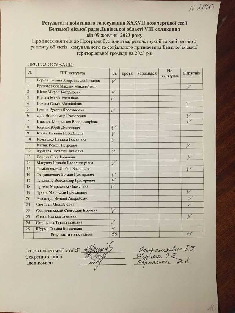 Голосування до рішення №1170