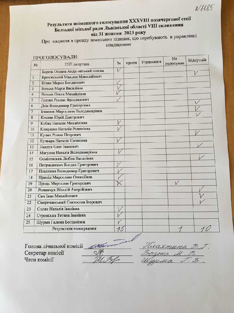 Голосування до рішення №1185