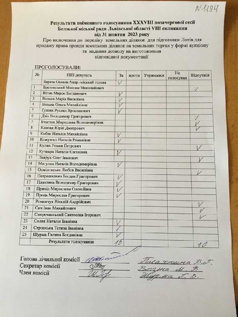 Голосування до рішення №1194