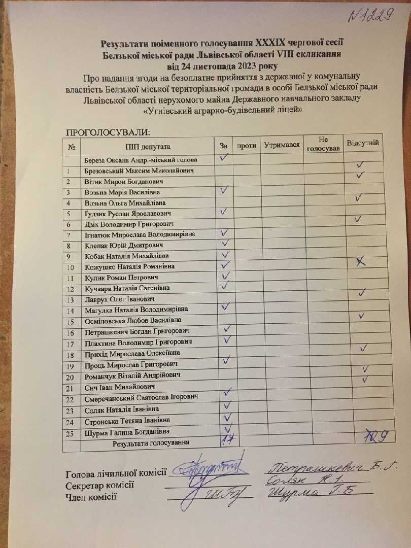 Голосування до рішення №1229