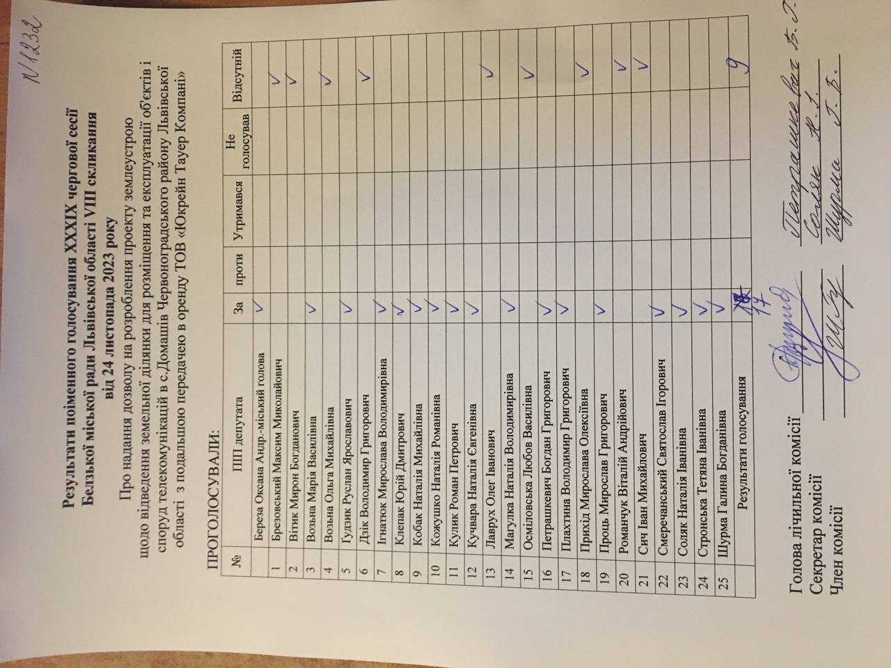 Голосування до рішення №1232