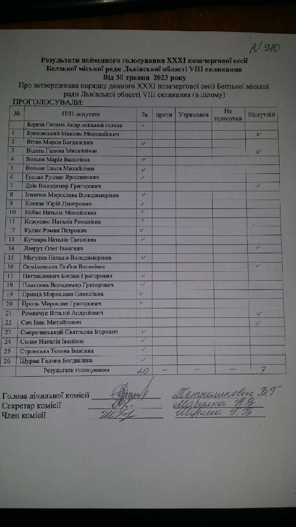 Голосування до рішення №980