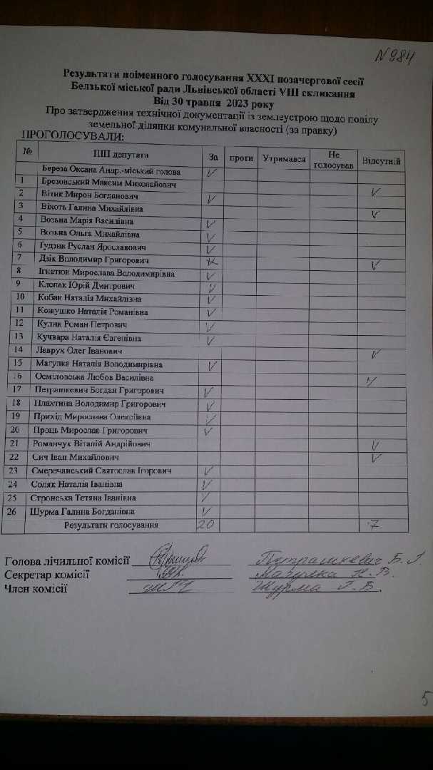 Голосування до рішення №984