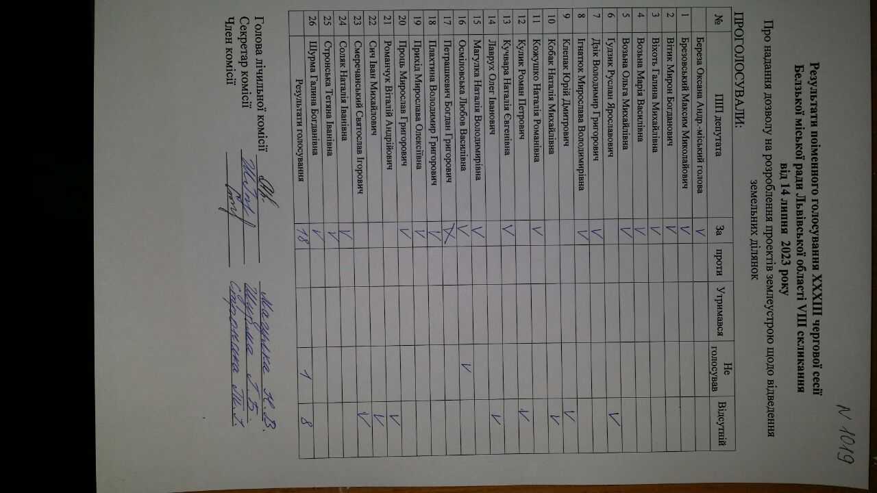 Голосування до рішення №1019