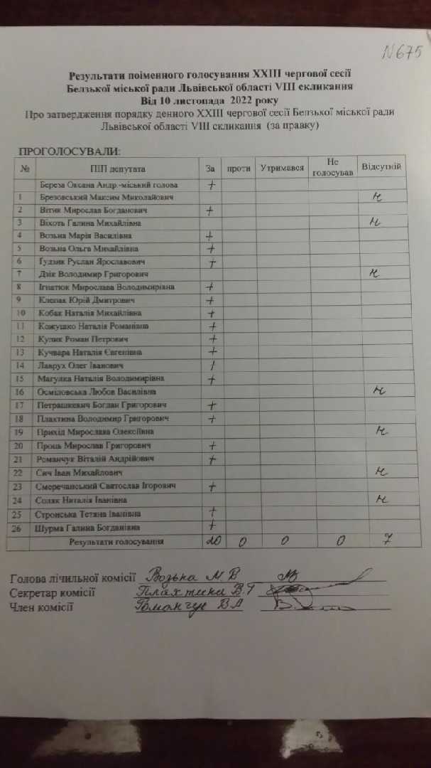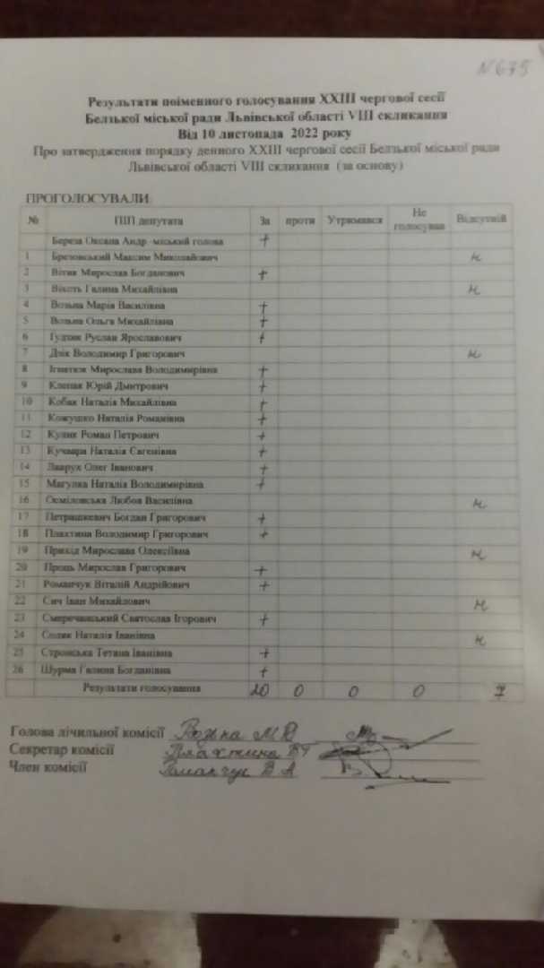Голосування до рішення №675